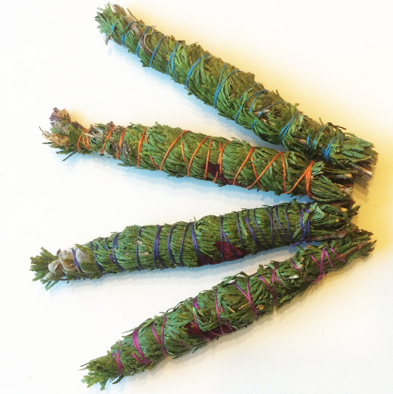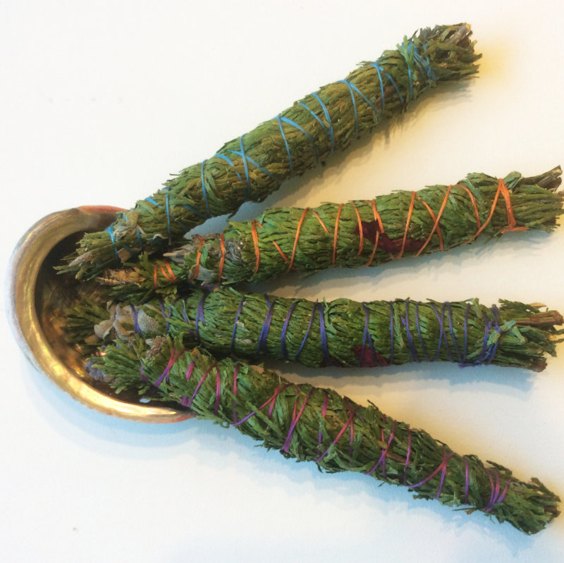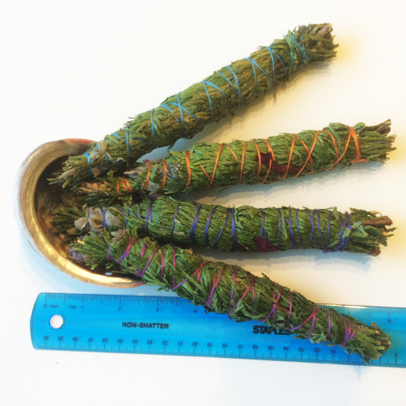 Our Special Blend of Cedar, Sage, Lavender, Oregano, and Rose, these smudge wands are home-grown in harmony with nature on the Spirit Clear Ranch in the Sierra Nevada Foothills of Northern California. Nuzzled by hummingbirds and a wide variety of happy, productive bees, the herbs are harvested and hand-wrapped with Reiki prayers. Single wand per order, Made to clear your Sacred Space.